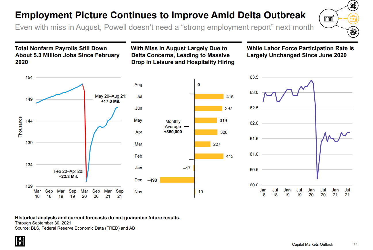 Historical analysis and current forecasts do not guarantee future results. Through September 30, 2021 Source: BLS, Federal Reserve Economic Data (FRED) and AB. Source: Alliance Bernstein, Captial Markets Outlook, 4th Quarter 2021