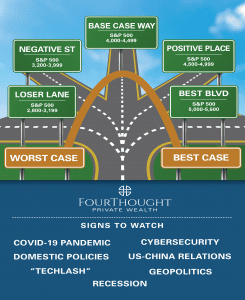 We developed a visual tool called street signs to help our clients understand our process. Forecasting is like riding in a car where you have no control over the destination. The best you can do is to look out the window and observe the street signs and landmarks. As you see more signs and landmarks, you have a better idea of your final destination.