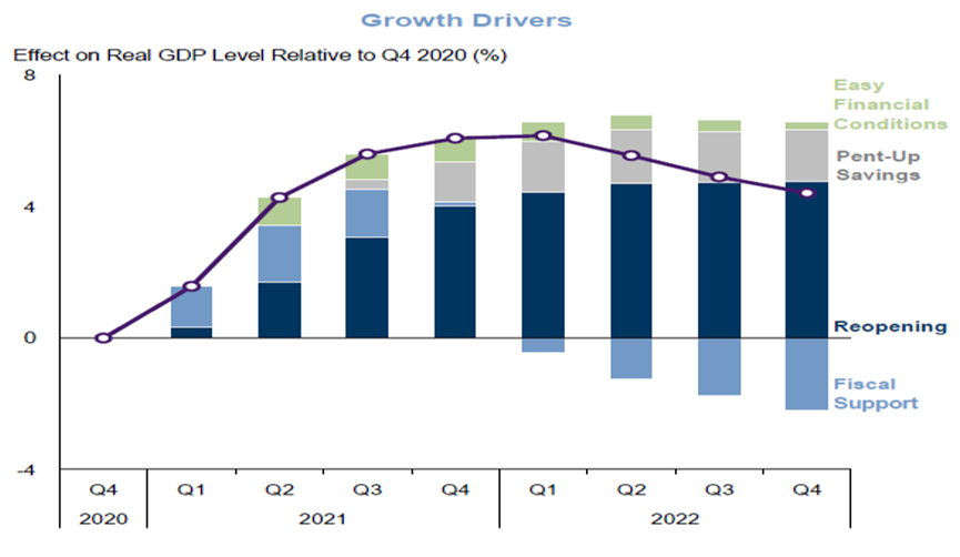 Source: As of April 5, 2021. “GDP” refers to domestic gross product. The economic and market forecasts presented herein are for informational purposes as of the date of this document. There can be no assurance that the forecasts will be achieved. Past performance does not guarantee future results, which may vary.