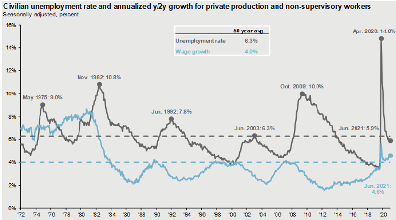 Source: BLS FactSet. JP Morgan Asset Management Guide to the Markets – U.S. Data are as of June 30, 2021