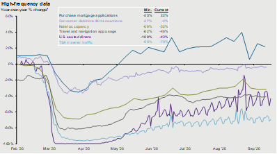 Source: App Annie, Chase, Mortgage Bankers Association (MBA), OpenTable, STR, Transportation Security Administration (TSA), J.P. Morgan Asset Management. Guide to the Markets – U.S. Data are as of September 30, 2020.