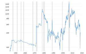 Consider that the price of oil in the middle of 1970 was approximately $22 per barrel. The price of oil now is about $40 per barrel. This is a 45% total return over 50 years. Not bad but compare that to a 3,785% total return for the S&P 500 over the same time frame.
