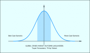 It is derived from the work of Philip E. Tetlock, author of “Superforecasting.” The bell curve shown here represents the distribution of possible results. The left side of the bell curve represents harmful, economically challenging and deadly outcomes. The right side of the bell curve represents headaches and hassles but no long-term effects. You turn on the news and you’ll hear pundits predicting across the spectrum. The reality is that no one knows.